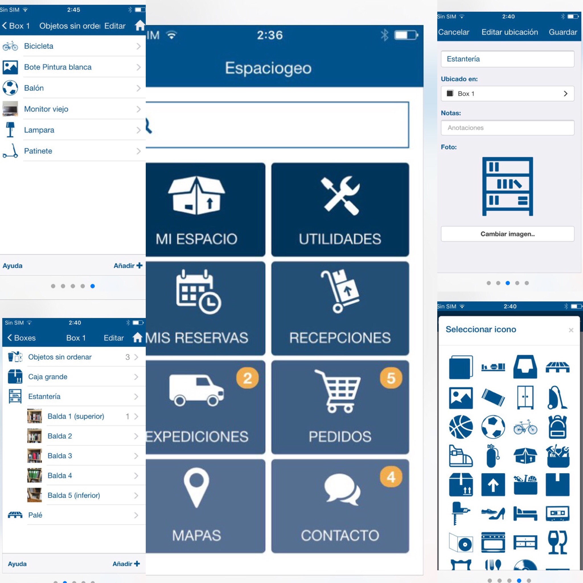 Localiza y haz un inventario dApp_colage_Espaciogeoe todos tus objetos y las cajas de tu local, Box o de tu trastero con nuestra nueva App.